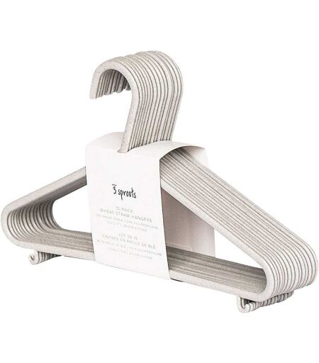 Die Kleiderbügel von 3 Sprouts kommen im praktischen Mehrfachpack. 15er-Pack Kinderkleiderbügel von 3 Sprouts mit zwei kleinen Haken ca. 29,5(L) x 17,5(B) x 0,7(H) cm aus Weizenstroh und Polypropylen Dank natürlichen Farben passen die Kleiderbügel perfekt zu jedem Einrichtungsstil. Die Kleiderbügel sind perfekt für Kinderkleidung und brauchen dank platzsparendem Design nicht viel Platz im Kleiderschrank. Auf den kleinen Haken der Unterseite finden Trägertops oder Accessoires Platz. Sie bestehen aus einem Gemisch von umweltfreundlichem Weizenstroh und Kunststoff – so wird der Anteil von Plastik in unserer Welt reduziert. Bei Bedarf kannst du die Kleiderbügel mit einem feuchten Tuch reinigen. Hinweis Details und Farben können unterschiedlich ausfallen. ...