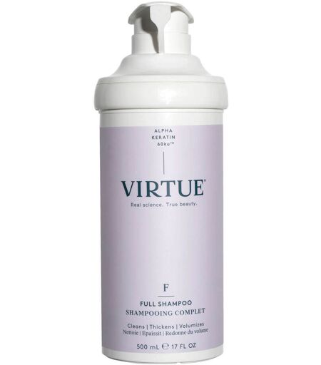 Revitalisieren Sie das Aussehen glanzloser Locken mit dem Virtue Full Shampoo. Dieses Shampoo wurde entwickelt, um feinem, schlaffem Haar neues Leben einzuhauchen. Es verleiht ihm mehr Fülle und Form, während es überschüssigen Schmutz, Öl und Unreinheiten sanft von der Kopfhaut bis in die Spitzen entfernt. Die belebende Formel ist leicht, aber effektiv und schäumt zu einem reichhaltigen Schaum auf, während sie reinigt, klärt und Volumen verleiht. Dieser Haarreiniger ist mit einem Cocktail aus stärkenden Inhaltsstoffen angereichert und nutzt das bahnbrechende Alpha Keratin 60ku®, ein Protein, aus dem 90% unserer Haare, Haut und Nägel bestehen, um die Illusion einer dickeren, volleren Mähne zu erzeugen. Unser Haar, vorausgesetzt, dieses Protein ist eines, das wir natürlich produziert haben, ermöglicht es der Formel, stumpf aussehende Locken zu glätten und zu beleben. Das volumengebende Shampoo verhindert, dass Ihre Strähnen zusätzlich beschwert werden, da es den Schmutz auflöst und so ein großes, federndes und lang anhaltendes Finish unterstützt. Dieses Shampoo von Virtue ist sicher in der Anwendung bei farbbehandelten Haaren und beeinträchtigt nicht die Lebendigkeit bestehender Frisuren. Paraben- und glutenfrei. ...