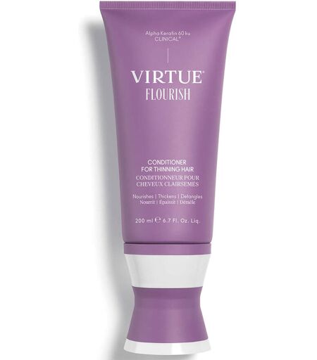 Discover a protein-rich formula designed to strengthen and nourish fragile hair. The VIRTUE Flourish Conditioner for Thinning Hair is infused with a rich blend of probiotic ferment, cyperus plant root oil and biomimetic signal peptides, working to enhance softness and shine, while promoting hair growth.Formulated with alpha and gamma keratins, the conditioner works to enhance flexibility and elasticity within each hair, delivering a healthier-looking finish. ...