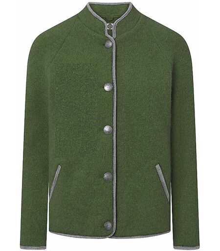 Mit dieser zeitlos traditionellen Jacke sind Ihnen bewundernde Blicke auf jedem Volksfest sicher. Der klassische Stehkragen, echte Metallknöpfe und feine Kontrastabschlüsse verleihen Berna eine traditionsbewusste Note – kombiniert mit einer klaren, modernen Linienführung. Gefertigt aus 100 % reiner Shetland-Wolle, hält sie angenehm warm und sorgt zugleich für eine natürliche Temperaturregulierung – ideal für kühle Abende und festliche Anlässe im Freien. Farbbezeichnung: Klee Material: 100% Schurwolle ...