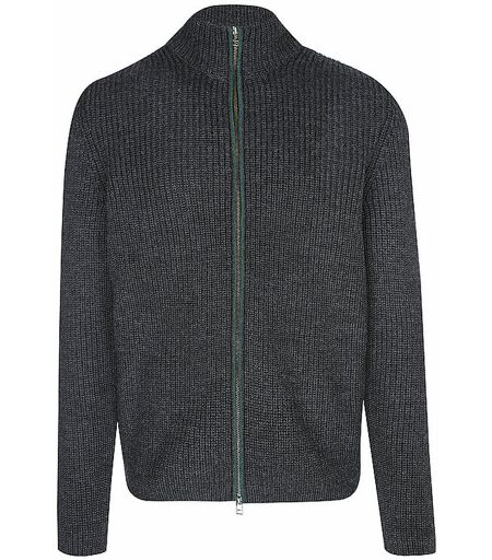 Herren Trachten Strickjacke aus feiner Schurwolle Stehkragen Langarm Schließt mit Zwei-Wege Reißverschluss Gerade geschnitten Melierte Optik Farbbezeichnung: Anthrazit Tanne Material: 100% feine Schurwolle ...