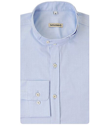 Herren Trachtenhemd aus Baumwoll-Stretch Kerniger Griff Stehkragen Langarm mit Manschette Unifarben mit Struktur Abgerundetes Saumende Ideal für festliche Anlässe Farbbezeichnung: Taubenblau Material: 96% Baumwolle 4% Elasthan ...