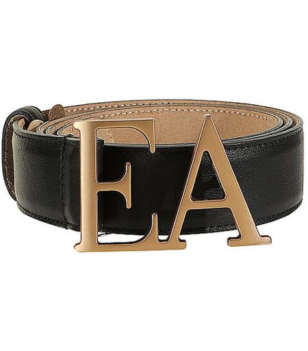 Damen Gürtel aus glattem Leder Markante große Schnalle mit dem EA-Logo Unifarben Breite: 2,5cm Farbbezeichnung: Schwarz Material: 100% Leder ...