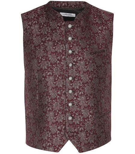 Herren Trachtengilet aus Jacquard Stehkragen Ärmellos Knopfleiste mit dekorativen Metall-Knöpfen Gerade geschnitten Florales Muster Dekorative Leistentaschen Rückenteil mit Streifenmuster Farbbezeichnung: Beere Gemustert Material: 75% Polyester, 25% Baumwolle Rücken: 100% Baumwolle ...