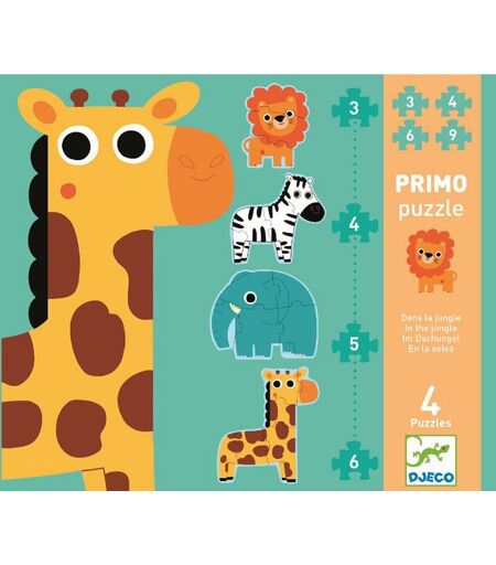 Djeco - Kombi Puzzle: In the jungle Progressive Puzzle: Puzzle vor allem für Kinder ab 2 Jahren. Jede Box enthält zusätzlich Puzzle zwischen 3 und 15 Teilen. 4 Puzzle (3, 4, 5 und 6 Teile). ...