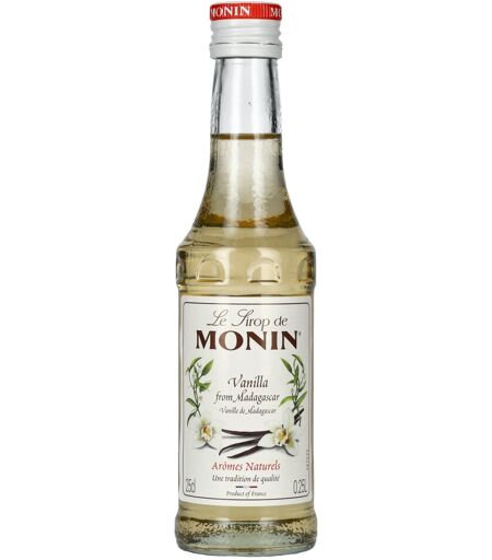 Der Le Sirop de Monin Vanille in der handlichen 0,25-Liter-Flasche bringt das aromatische, süße und zugleich würzige Profil echter Vanille in kompakter Form in die Küche und Bar. Hergestellt vom renommierten französischen Siruphersteller Monin, überzeugt diese Variante durch ihre Vielseitigkeit und die hohe Qualität natürlicher Aromastoffe. Vanille zählt zu den beliebtesten Geschmackskomponenten weltweit – dieser Sirup bietet eine ideale Möglichkeit, sie einfach und effizient in verschiedenste Getränke und Speisen zu integrieren. Ob für den privaten Gebrauch, kleine Cafés oder mobile Bars – die 0,25-l-Größe ist besonders praktisch und platzsparend. Der Sirup ist alkoholfrei, glutenfrei, vegan und ohne künstliche Farbstoffe, was ihn zu einer hervorragenden Wahl für eine breite Zielgruppe macht. Sein reiches, florales Aroma mit cremiger Süße verleiht klassischen wie modernen Rezepten eine warme Tiefe. Farbe: Helles Gold mit warmem Schimmer. Nase: Ausdrucksstark mit süßen, cremigen Vanille- und Karamellnoten. Geschmack: Mild, rund und voll mit intensiver Vanille, feiner Süße und weichem Charakter. Abgang: Lang anhaltend, warm und angenehm süß. Ideal für Kaffeespezialitäten wie Latte Macchiato, Cappuccino oder Vanille-Latte. Auch in heißen Schokoladen, Milchshakes oder Desserts entfaltet der Sirup sein volles Potenzial. Perfekt geeignet zum Verfeinern von Eis, Pudding, Crêpes oder Kuchenfüllungen. Harmoniert besonders gut mit Beeren, Nuss, Karamell und Zimt. Eine vielseitige Zutat für alle, die den klassischen Geschmack von Vanille auf einfache Weise in ihre Rezepte integrieren möchten. ...