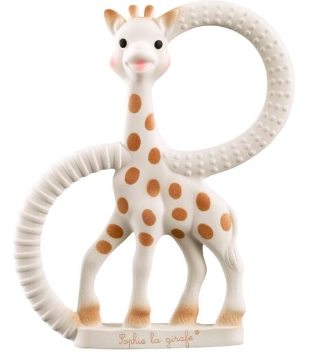 Dieser Beißring aus 100% Naturkautschuk hilft dem Baby, den Zahnungsschmerz zu lindern. Die Ohren, Hörner, Füße und Ringe bieten dem Baby viele Möglichkeiten, darauf herumzukauen. Beide Ringe haben unterschiedliche Strukturen - Rillen und Noppen - und das Baby wählt die ihm angenehmste Fläche zum Beißen. ab Geburt Größe: ca 15 x 12 cm Der Beißring Sophie la girafe ist leicht und lässt sich gut an den Ringen greifen und festhalten. Reinigung: Keine Hochtemperatursterilisierung. Nicht in der Spülmaschine reinigen. Nur mit einem feuchten Tuch abwischen. ...