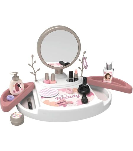 Das My Beauty Studio von Smoby bietet kleinen Beauty-Fans optimale Voraussetzungen für fröhliche und kreative Spiele. My Beauty Studio von Smoby inkl. 15 Accessoires (unechte Spielkosmetika und Leerbehälter (zwei Lippenstifte, zwei Nagellacke, Mascara, Pumpfläschchen, Cremedöschen, Pflegelotion sowie ein zweiseitiges Wattepad zum Abschminken), Haarbürste, Perlenarmband, 2 Haargummis und Haarklammern) mit herausnehmbarem (Hand-)Spiegel, Aufbewahrungsfächern, schwenkbaren Ablagen und 2 Schmuckbäumen 40(L) x 31(B) x 29(H) cm aus Kunststoff (57 % Recyclinganteil) ab 3 Jahren geeignet hergestellt in Frankreich Mit dem Frisiertischaufsatz My Beauty Studio von Smoby können Kids ab drei Jahren im Spiel Make-ups, Frisurenstylings und Nagel-Designs ausprobieren. 15 verschiedene Accessoires sorgen für ein realistisches Erlebnis. Dank praktischer Aufbewahrungsfächer, schwenkbarer Ablagen und zwei Schmuckbäumen sind sie immer griffbereit verstaut. Der praktische Spiegel des Studios lässt sich bei Bedarf herausnehmen und als Handspiegel verwenden. Gut zu wissen: Das My Beauty Studio wird in Frankreich produziert. Für nachhaltige Eigenschaften setzt es auf einen Recyclinganteil von 57 Prozent. ...