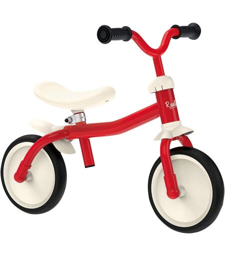 Mit dem Laufrad Rookie von Smoby unternehmen Kids ab zwei Jahren ihre ersten Fahrversuche auf zwei Rädern. ab 2 Jahren geeignet belastbar bis 50 kg 65,5(L) x 37(B) x 50(H) cm höhenverstellbarer Lenker (50-56 cm) mit Einschlagsbegrenzung, Soft-Lenkergriffe mit Handschutz, höhenverstellbarer Sattel (31,5-34 cm), Räder mit abriebfester und wartungsfreier Premium-Softmaterial-Beschichtung Das Laufrad Rookie von Smoby ist speziell für jüngere Kids ausgelegt. Sein stabiler Metallrahmen ist leicht und wendig. Der Lenker ist mit einer Einschlagsbegrenzung ausgestattet, um unkontrollierten Kurvenfahrten entgegenzuwirken. Soft-Lenkergriffe bieten den Minis guten Halt. Dank seitlicher Puffer schützen sie die Finger, falls die Kleinen stürzen oder zu nah an Hindernissen vorbeisausen. Für eine optimale Größenanpassung ist die Lenkstange höhenverstellbar. Auch der Sattel des Bikes lässt sich unkompliziert auf die kleinen Nutzer abstimmen. Seine spezielle, vorn etwas nach oben gezogene Form unterstützt die Kids dabei, die richtige Sitzposition einzunehmen. Die Räder des Laufrads sind mit einem abriebfesten und wartungsfreien Premium-Softmaterial beschichtet. Dadurch sind die Minis leise unterwegs und genießen auch bei temporeichen Fahrten eine gute Bodenhaftung. Gut zu wissen: Das Fahren mit dem Laufrad schult die motorischen Fähigkeiten und den Gleichgewichtssinn. Das bereitet Mini-Biker optimal auf das spätere Fahrradfahren vor. ...