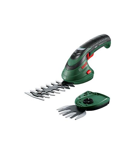 Das Multitool für Sträucher und Gräser: die BOSCH Home & Garden Isio Akku-Heckenschere 3,6 V mit AkkuDie kabellose BOSCH Home & Garden Isio Akku-Heckenschere 3,6 V überzeugt mit einem handlichen und kompakten Design, perfekt zum Formen von Büschen und Sträuchern. Mit einem Gewicht von nur 550 g und einer ergonomischen Form liegt sie angenehm in der Hand und ermöglicht präzises Arbeiten ohne Ermüdung.Leistungsstark und effizientAusgestattet mit einem 3,6 V Akku und einer Kapazität von 1,5 Ah bietet die Isio Heckenschere genug Leistung für kleinere Gartenarbeiten. Pro Akkuladung kann eine Schnittfläche von bis zu 22 m² bearbeitet werden. Das integrierte Bosch Anti-Blockier-System ermöglicht bis zu 50 Minuten blockierfreie Laufzeit.Praktisches ZubehörIm Lieferumfang enthalten sind zwei Multi-Click-Aufsätze: ein Grasscherblatt mit einer Breite von 8 cm und ein Strauchscherenmesser mit einer Schnittlänge von 12 cm. Damit eignet sich die Isio sowohl für präzise Strauchschnitte als auch für das Trimmen von Rasenkanten. Der Messerabstand von 8 mm sorgt für saubere und gleichmäßige Schnittergebnisse. Die Heckenschere wird mit einem Ladegerät, einer Aufbewahrungshülle und den beiden Aufsätzen geliefert.Ideal für kleine GärtenDieser unentbehrliche Helfer im Garten ist die perfekte Wahl für alle, die Wert auf eine einfache Handhabung und präzise Ergebnisse legen. Mit ihrem vielseitigen Zubehör und der kompakten Bauweise erleichtert sie die Pflege von Sträuchern und Rasenkanten erheblich.Holen Sie sich jetzt die BOSCH Home & Garden Isio Akku-Heckenschere 3,6 V mit Akku und bringen Sie Ihren Garten mühelos in Bestform! ...