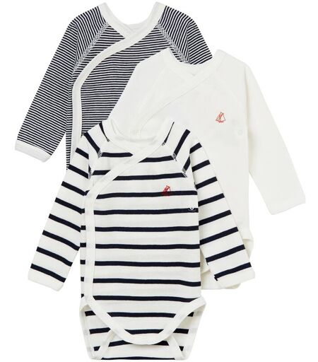 Petit Bateau 3er-Pack Wickelbodys langarm Uni Ringel Streifen - mehrfarbig - Unisex - Size: 56