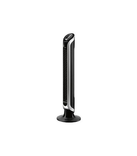 Sorgt für frischen Wind: der Rowenta VU6670 Turmventilator 40 WWenn es im Sommer in Ihren Räumen auch immer sehr schnell heiß wird, dann schafft der Rowenta VU6670 Turmventilator 40 W garantiert Abhilfe. Ob lediglich eine kühle Brise oder eine starke Abkühlung – mit den verschiedenen Geschwindigkeitsstufen haben Sie die Möglichkeit, den Grad des Kühleffekts zu steuern.Frischer Wind mit einstellbarer IntensitätDer Rowenta Turmventilator VU6670 besitzt eine Umwalzleistung von 350 m³/h. Die Intensität der Luftströmung lässt sich mit Hilfe der 4 Leistungsstufen an Ihre Wünsche anpassen. Erhöhen Sie die Stufe an besonders heißen Tagen oder genießen Sie ein laues Lüftchen bei milderen Temperaturen. Die Lautstärke, die während des Betriebs erzeugt wird, liegt bei 45 dB.Das ist besondersFolgende speziellen Eigenschaften hat das Modell außerdem zu bieten: Kabelaufwicklung, LED-Display. Es ist zu warm, um sich zu bewegen? Kein Problem – mit der mitgelieferten Fernbedienung müssen Sie sich nicht anstrengen, um das Gerät zu steuern. Mit der Timer-Funktion können Sie die Betriebszeit genau festlegen und Energie sparen, indem Sie das Gerät zu einem definierten Zeitpunkt automatisch ausschalten lassen.Schwenkbar!Genießen Sie dank einer Schwenkbarkeit um 180° eine gezielte und angenehme Luftverteilung im gesamten Raum.Robust und pflegeleichtDas Gerät besteht aus Kunststoff. Dadurch ist es sehr robust und leicht zu reinigen, was für eine einfache Handhabung sorgt. Mit Maßen von 28,0 x 28,0 x 100,0 cm fügt sich der Rowenta Turmventilator VU6670 überall harmonisch ein. Das Exemplar wiegt insgesamt 4 kg. Bei Bestellung des Rowenta VU6670 Turmventilators 40 W erhalten Sie Ihre Lieferung inklusive Fernbedienung.Frischer Wind am Arbeitsplatz garantiertErleben Sie den Komfort des Rowenta VU6670 Turmventilators 40 W, den sich perfekt in jede Raumgestaltung einfügt und für Ihr Wohlbefinden sorgt. ...