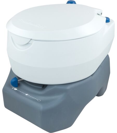 Die Campingaz® Antimikrobielle Portable Campingtoilette 20L eignet sich ideal für Camping, Reisen, auf dem Boot, bei Bauarbeiten oder auch für Personen mit eingeschränkter Bewegungsfähigkeit. Der Sitz und die Schüssel sind mit einer antimikrobiellen Barriere ausgestattet, die Geruch hemmt und Wachstum von Pilzen und Schimmel unterbindet. Die Toilette ist mit einem neuen extra starken Verschlusssystem ausgestattet. Für besseren Komfort wurde die Sitzhöhe auf 41cm erhöht und der Sitz verbreitert. Die Toilette ist mit einem 15 L Frischwasser- und einem 20 L Abwasssertank ausgestattet. Integrierte Griffe vereinfachen den Transport. ...