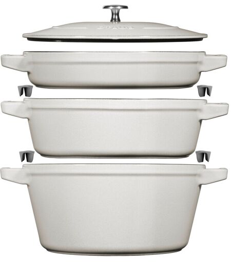 STAUB Kochtopf-Set »La Cocotte«, 3-teilig Farbe: Außen weiß, innen schwarz Deckelgriff silberfarben Material: Gusseisen, emailliert Maße: B x H x T inkl. Griffen ca. 31 x 20 x 24 cm Inhalt: Inkl. Randschützern Gewicht: Ca. 10 kg Füllmenge: Cocette ca. 4,2 l Schmortopf ca. 2,9 l Pfanne ca. 1,9 l Sonstige Hinweise: Anlieferung durch Paketdienst bis zum Haus Hersteller: STAUB ZWILLING J.A. Henckels Europa GmbH Grünewalder Straße 14-22, 42657 Solingen service.de.tchibo@zwilling.com Hersteller-Artikel-Nummer: 40508-388-0 Set mit Cocotte, Schmortopf, Pfanne und DeckelHochwertiges, emailliertes GusseisenInkl. Randschützern zum sicheren AufbewahrenFür alle Herdarten geeignet – inkl. InduktionDurchmesser ca. 24 cmStaub is a member of the ZWILLING Group ...