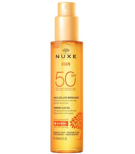 Nuxe Sun Sonnenöl Gesicht & Körper LSF 50 bietet Anti-Aging-Schutz, einen hohen Lichtschutzfaktor und spendet Ihrer Haut Feuchtigkeit für eine langanhaltende Sommerbräune.Wirkungsweise von Nuxe Sun Sonnenöl Gesicht & Körper LSF 50Die 3 UV-Filter mit Breitband UVA und UVB Schutz sorgen für optimale Wirksamkeit und Verträglichkeit.