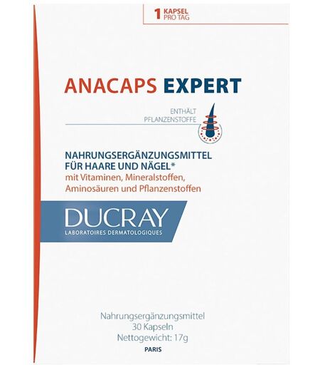 DosierungAnwendungsempfehlung von DUCRAY ANACAPS EXPERT Kapseln: Schlucken Sie 1 Kapsel morgens mit einem großen Glas Wasser zum EssenInformationDUCRAY ANACAPS EXPERT Kapseln für starke Haare mit Vitaminen, Mineralstoffen und PflanzenextraktenProduktdetails & PflichtangabenDas Nahrungsergänzungsmittel DUCRAY ANACAPS EXPERT Kapseln versorgt die Haarzellen mit wertvollen Vitaminen, Mineralstoffen und Pflanzenextrakten. Die Inhaltsstoffe Biotin und Zink leisten einen Beitrag zum Erhalt gesunder und normaler Haare. Zink hilft, die Zellen vor oxidativem Stress zu schützen. DUCRAY ANACAPS EXPERT Kapseln zeichnet sich dank seiner veganen und glutenfreien Formulierung durch eine hohe Verträglichkeit aus und eignet sich als tägliche Ergänzung zur Haarpflegeroutine.DUCRAY ANACAPS EXPERT Kapseln Nahrungsergänzungsmittel- Nahrungsergänzungsmittel: für starke Haare- Enthält wertvolle Pflanzenextrakte, Vitamine und Mineralstoffe- Trägt zum Erhalt normaler Haare und zum Schutz vor oxidativem Stress bei- Vegan und glutenfrei, daher hohe VerträglichkeitAnwendungshinweise für DUCRAY ANACAPS EXPERT KapselnDamit das Mittel seine volle Wirkung entfalten kann, sollte es über einen längeren Zeitraum hinweg regelmäßig eingenommen werden. Wir empfehlen eine Einnahmedauer von mindestens drei Monaten. Pro Tag wird morgens eine Kapsel mit reichlich Wasser unzerkaut geschluckt. Für eine bessere Wirkung kann zusätzlich NEOPTIDE EXPERT Haarausfall- und Wachstumsserum von DUCRAY verwendet werden.Die Anwendung auf einen Blick:• 1 Kapsel täglich• Mindestens 3 MonateHäufig gestellte Fragen (FAQs)Ist DUCRAY ANACAPS EXPERT Kapseln auch für gef ...