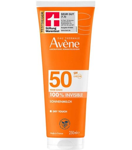 Anwendungsgebiet von Avène Sonnenmilch SPF 50 Avène Sonnenmilch SPF 50 - Stiftung Waretest Testsieger mit Bestnote* ist ideal für den Schutz empfindlicher Haut vor schädlicher UV-Strahlung geeignet. Sie bietet einen hohen Sonnenschutz (LSF 50) und ist damit perfekt für den täglichen Gebrauch, insbesondere bei längerer Sonnenexposition, Outdoor-Aktivitäten oder im Urlaub. Durch ihre leichte und geschmeidige Textur zieht die Sonnenmilch sofort ein, ohne sichtbare Rückstände zu hinterlassen, und sorgt gleichzeitig für eine langanhaltende Feuchtigkeitsversorgung.Die Sonnenmilch ist besonders gut verträglich und eignet sich auch für empfindliche oder zu Irritationen neigende Haut. Sie hinterlässt ein angenehm trockenes Hautgefühl und schützt zuverlässig bei Aktivitäten am Strand oder im Wasser, da sie wasserfest, schweißfest und sand-abweisend ist. Dank ihrer veganen Formulierung und dem Verzicht auf Octocrylen ist sie eine sanfte und umweltfreundliche Wahl. Mit der Avène Sonnenmilch SPF 50 erhalten Sie einen umfassenden Schutz und Pflege für die Haut in der Sonne.Wirkungsweise von Avène Sonnenmilch SPF 50 Die Avène Sonnenmilch SPF 50 schützt die Haut effektiv vor schädlichen UVB- und UVA-Strahlen durch hochwirksame, photostabile UV-Filter. Dank Avène Thermalwasser beruhigt und stärkt sie die Haut, während ihre leichte Formel schnell einzieht und ein trockenes Hautgefühl hinterlässt. Sie spendet langanhaltend Feuchtigkeit und bleibt wasser-, schweiß- und sandfest, selbst bei intensiven Aktivitäten. Ihre vegane und hautschonende Formulierung macht sie ideal für empfindliche Haut.Wirkstoffe / Inhaltsstoffe / ZutatenAvène Sonnenmilch SPF 50 enthält:Avene Thermal Spring Water (Avene Aqua). Diethylamino Hydroxybenzoyl Hexyl Benzoate. Diisopropyl Sebacate. Coco-Caprylate/Caprate. Dicaprylyl Carbonate. Diethylhexyl Butamido Triazone. Glycerin. Bis-Ethylhexyloxyphenol Methoxyphenyl Triazine. Glyceryl Stearate Citrate. Oryza Sativa (Ri ...
