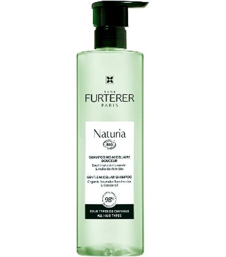 Wirkungsweise von Furterer NATURIA Sanftes Mizellen-ShampooDas Furterer NATURIA Sanftes Mizellen-Shampoo reinigt sanft und wirksam alle Haartypen. Dank der Mizellen-Technologie werden Unreinheiten effektiv aufgenommen, ohne die Haarfaser auszutrocknen oder die Kopfhaut zu reizen. Die zart duftende, bio-zertifizierte Pflege mit wertvollem Rizinus-Öl und Bio-Lavendelblütenwasser aus Frankreich ist dermatologisch getestet und für die Anwendung bei Kindern geeignet. Perfekt gereinigt, ist das Haar schön und gesund und ist dabei weich, geschmeidig und leicht. Das Shampoo kann ab 3 Jahren und in Kombination mit allen René Furterer Haarpflegeprodukten verwendet werden.