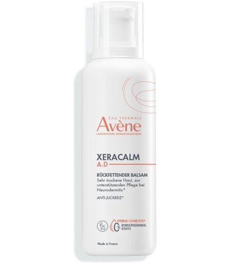 Eau Thermale Avène – XeraCalm A.D Rückfettender Balsam Der rückfettende Balsam XeraCalm A.D von Eau Thermale Avène bietet intensiven Schutz und Pflege für sehr trockene, juckende und zu Neurodermitis neigende Haut. Dank der Sterile Cosmetics® Technologie, die für besondere Reinheit sorgt, und der sorgfältig ausgewählten Inhaltsstoffe, wie I-modulia® und Cer-omega Lipide, ist der Balsam besonders gut verträglich und unterstützt das Mikrobiom der Haut. Das enthaltene Avène Thermalwasser wirkt beruhigend und reizlindernd. Dieser Balsam für die Intensivpflege von sehr trockener Haut und bei Neigung zu Neurodermitis eignet sich zur täglichen Anwendung bei Neugeborenen, Kindern und Erwachsenen. Kein Juckreiz mehr nach 5 Tagen* Lindert Juckreiz, der durch trockene Haut verursacht wird Unterstützt und regeneriert die natürliche Hautbarriere Dank Sterile Cosmetics®-Technologie frei von Konservierungsstoffen Frei von Duftstoffen und nicht komedogen (verstopft die Poren nicht) Geeignet für Erwachsene, Kinder und sogar Neugeborene Vegane Formulierung Intensivpflege für empfindliche Hauttypen XeraCalm A.D wurde speziell für die Bedürfnisse von sehr trockener Haut entwickelt, die zu starkem Juckreiz und zu Neurodermitis neigt. Der Balsam zeichnet sich durch seine hohe Hautverträglichkeit aus, was ihn zu einer ausgezeichneten Wahl bei Neurodermitis macht. Ebenfalls wichtig für Menschen mit Neurodermitis: Das enthaltene Glycerin spendet der Haut reichlich Feuchtigkeit. Die einzigartige Formel zur Intensivpflege, angereichert mit I-modulia®, Cer-omega Lipiden und Avène Thermalwasser, beruhigt die Haut, lindert Reizungen und Jucken und stellt die natürliche Hautschutzbarriere wieder her. Wirkweise von Eau Thermale Avène – XeraCalm A.D Rückfettender Balsam Die Kombination aus I-modulia®, einem postbiotischen Aktivstoff, Cer-omega Lipiden und dem beruhigenden Avène Thermalwasser trägt dazu bei, die Symptome von Juckreiz zu lindern und die Haut zu regenerieren. Dadurch wirkt es bei Neurodermitis, trockenen Ekzemen und Xerose, wie Altersxerose ganz besonders wohltuend. Die Sterile Cosmetics® Technologie sorgt dafür, dass XeraCalm A.D völlig ohne Konservierungsstoffe auskommt, was besonders für empfindliche Haut wichtig ist. Das Produkt wird unter streng sterilen Bedingungen hergestellt und mit einem hermetischen Verschlusssystem ausgestattet, das das Eindringen von Bakterien verhindert. Anwendungshinweise für Eau Thermale Avène – XeraCalm A.D Rückfettender Balsam Der Balsam ist einfach anzuwenden: Trage XeraCalm A.D auf die mit XeraCalm A.D Reinigungsöl gereinigte Haut auf. Verteile dazu den Balsam zunächst in den Händen und streiche dann sanft über die betroffenen, gereinigten Bereiche, ohne zu reiben. Die Anwendung von XeraCalm A.D Rückfettender Balsam sollte ein- bis zweimal täglich erfolgen. Häufig gestellte Fragen (FAQs) Darf XeraCalm A.D auch bei Kleinkindern und Neugeborenen angewandt werden? Ja, der Balsam kann von Geburt an verwendet werden und... ...