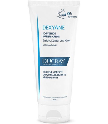 Anwendungsgebiet von DUCRAY DEXYANE - Schützende Barriere CremeDUCRAY DEXYANE - Schützende Barriere Creme ist eine Pflege, die bei stark gereizter Haut, zu Trockenheit neigender Haut und bei atopischem Ekzem angewendet werden kann. Sie ist bereits ab Geburt geeignet.Wirkungsweise von DUCRAY DEXYANE - Schützende Barriere CremeDUCRAY DEXYANE - Schützende Barriere Creme schützt die Haut vor chemischen und mechanischen Reizungen im Alltag und bedingt durch die berufliche Tätigkeit und stärkt die Hautbarriere. Sie hält bis zu 5 Handwäschen stand.Wirkstoffe / Inhaltsstoffe / ZutatenInhaltsstoffe von DUCRAY DEXYANE - Schützende Barriere Creme: