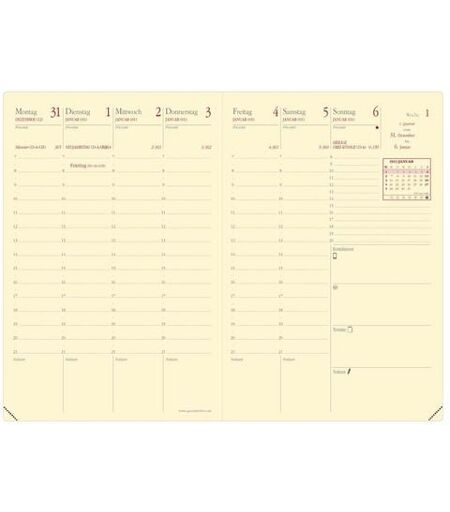 Quo Vadis - Einlagen Terminkalender - 2026 - Geschäft Prestige - Die Woche Planning - Deutsch - Dez/Dez - 10x15 cm - Clairefontaine-Papier Elfenbein - Hergestellt in Frankreich Wochenkalender mit einer doppelseitigen Übersicht Wochenübersicht - die ganze Woche auf einen Blick Enthält auf jeder Doppelseite einen freien Bereich zum Notieren wichtiger Informationen (zu kontaktierende Personen, zu erledigende Dinge usw.) Papier Clairefontaine, Elfenbein, für ein glattes und flüssiges Schreibgefühl, perforierte abreißbare Ecken für eine einfache Orient ierung Umschlag Gebunden ultra resistant Kaufen Sie eine Einlage von Quo Vadis, um Ihren abnehmbaren Deckel noch länger zu nutzen! ...