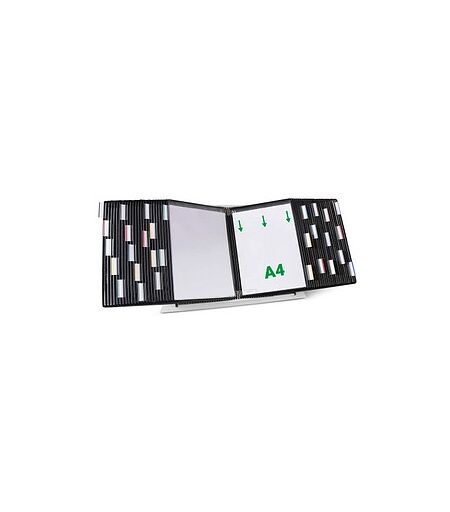 Tarifold Sichttafelsystem 434507 DIN A4 schwarz mit 50 St. Sichttafeln – für eine optimale Struktur im BüroalltagEgal ob auf der Baustelle, in der Großküche, im Büro, im Call-Center oder auf dem Messestand – mit dem tarifold Sichttafelsystem 434507 DIN A4 schwarz mit 50 St. Sichttafeln sind Ihre Informationen perfekt geschützt und übersichtlich strukturiert. Dank der transparenten Einsteckfächer können Sie besonders schnell auf Ihre Dokumente zugreifen und haben alles Wichtige stets im Blick.Ist das Set erweiterbar?Um endlich für Ordnung zu sorgen, können Sie das tarifold Sichttafelsystem auf Ihrem Tisch positionieren. Endlich sind Ihre Unterlagen und Informationen übersichtlich und trotzdem in unmittelbarer Nähe abgelegt. Mit dem tarifold Sichttafelsystem bekommen Sie 50 Sichttafeln mitgeliefert. So können Sie sofort loslegen und Ihre Übersichtspläne, Arbeitsanweisungen, Preislisten oder Produktbeschreibungen übersichtlich ablegen. Und falls Ihnen der Platz nicht mehr ausreicht, ist das Produkt jederzeit erweiterbar.Das MaterialDie Sichttafeln haben einen Rahmen in der Farbe schwarz. So sorgen Sie direkt für eine bessere Ordnung. Zum Beispiel können Sie die Farbe einem bestimmten Projekt oder einer Abteilung zuordnen. Die Tafeln aus kunststoffummanteltem Stahldraht gewährleistet einen langfristigen Schutz vor Schmutz, Feuchtigkeit und Abnutzung. Einen festen Halt der Tafeln gewährleistet das stabile Gestell aus Metall.Welches Format haben die Tafeln?Die Tafeln sind geeignet für Unterlagen bis zum DIN A4-Format. Da dies das gängigste Format ist, ist das Produkt ausgezeichnet dafür geeignet, Sie bei Ihren täglichen Anforderungen zu unterstützen.Treffer?Die Lieferung des tarifold Sichttafelsystems 434507 DIN A4 schwarz mit 50 St. Sichttafeln erfolgt inklusive 50 Sichttafeln, 25 Sichtreiter und beschriftbare Einsteckschilder. ...