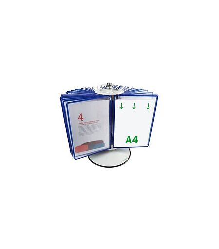 Alle wichtigen Unterlagen auf einen Blick mit dem tarifold Sichttafelsystem 444501 DIN A4 blau mit 50 St. SichttafelnEgal ob auf der Baustelle, in der Großküche, im Büro, im Call-Center oder auf dem Messestand – mit dem tarifold Sichttafelsystem 444501 DIN A4 blau mit 50 St. Sichttafeln sind Ihre Unterlagen perfekt geschützt und übersichtlich strukturiert. Dank der transparenten Einsteckfächer können Sie besonders schnell auf Ihre Dokumente zugreifen und haben alles Wichtige stets im Blick.Mit 50 TafelnUm endlich für Ordnung zu sorgen, können Sie das tarifold Sichttafelsystem auf Ihrem Tisch positionieren. Endlich sind Ihre Unterlagen und Informationen übersichtlich und trotzdem in unmittelbarer Nähe abgelegt. Der richtigen Ordnung Ihrer Übersichtspläne, Arbeitsanweisungen, Preislisten oder Produktbeschreibungen steht ab sofort nichts mehr im Wege, denn 50 Sichttafeln werden bei diesem Produkt direkt mitgeliefert.Alles über das MaterialDurch einen Rahmen in der Farbe blau werden die Sichttafeln umfasst. So sorgen Sie direkt für eine bessere Ordnung. Zum Beispiel können Sie die Farbe einem bestimmten Projekt oder einer Abteilung zuordnen. Das Tafelmaterial PVC-Folie bietet einen langfristigen Schutz vor Knitterfalten oder Flecken. Den Tafeln bietet ein stabiles Gestell aus Metall einen festen Halt. Die eingesteckten Blätter werden zusätzlich von einem robusten Rahmen aus Kunststoff geschützt.Was ist besonders?Der Artikel verfügt über eine 360°-Drehung. Dadurch können Sie mit nur einem Dreh Ihre Informationen nicht nur im Hoch- sondern auch im Querformat betrachten.Das richtige FormatDas gängigste Papierformat ist DIN A4. Daher ist es überaus praktisch, dass Sie die Tafeln für alles im DIN A4-Format verwenden können.Konnte dieses Modell Sie überzeugen?Sie erhalten die Lieferung des tarifold Sichttafelsystems 444501 DIN A4 blau mit 50 St. Sichttafeln inklusive 50 Sichttafeln, 25 Sichtreiter und beschriftbare Einsteckschilder. ...