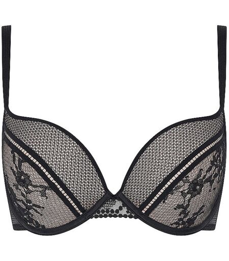 Damen Extra Push-Up BH Jour échelle- Einfassung am Cup Elegantes Spitzendesign Steg aus kompaktem Tüll Verschluss mit 4 Reihen Tiefer Ausschnitt Aus 26% recyceltem Material (als Prozentsatz des Gewichts) OEKO-TEX® Standard 100® zertifiziert Farbbezeichnung: Schwarz Stickerei: 100% Polyester Spitze: 100% Polyamid Spitze Rücken: 77% Polyamid, 23% Elasthan Tüll: 86% Polyamid, 14% Elasthan ...