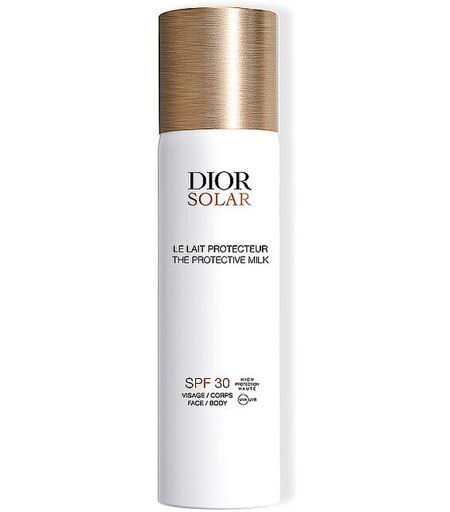 Dior Solar Le Lait Protecteur Visage et Corps SPF 30 ist eine für Gesicht und Körper geeignete Sonnenmilch mit hohem Schutzfaktor. Ihre Formel ist wasserfest. Der praktische und intuitive Sprühapplikator ermöglicht eine gleichmäßige Verteilung auf der Haut. Die milchige Textur dieser Sonnenpflege spendet Feuchtigkeit, erfrischt die Haut und schützt sie vor UVA-/UVB-Strahlen. Neben ihrer schützenden Wirkung trägt Dior Solar Le Lait Protecteur Visage et Corps SPF 30 zu einer gleichmäßigeren und schöneren Bräune bei, damit die Haut herrlich strahlt. Die nicht wahrnehmbare Textur der Sonnenmilch verströmt einen angenehmen Duft. Anwendung: Großzügig vor dem Sonnenbaden auftragen und regelmäßig wiederholen, vor allem nach dem Schwimmen. Vorsichtsmaßnahmen für die Anwendung: Großzügig vor dem Sonnenbad auftragen und mehrmals wiederholen, vor allem nach dem Baden. Nicht zu lange in der Sonne bleiben, auch wenn ein Sonnenschutzmittel verwendet wird. Die Sonne bei Zeiten intensiverer Sonneneinstrahlung meiden. Eine reduzierte Menge des angewandten Produkts verringert deutlich den Schutzgrad. Die Augenpartie aussparen. Säuglinge und Kleinkinder zu keiner Zeit der Sonne aussetzen. Übermäßiges Sonnenbaden stellt eine ernste Gefahr für die Gesundheit dar. Achtung. Behälter steht unter Druck: Kann bei Erwärmung bersten. Von Hitze, heißen Oberflächen, Funken, offenen Flammen und anderen Zündquellen fernhalten. Nicht rauchen. Nicht durchstechen oder verbrennen, auch nicht nach der Verwendung. Vor Sonnenbestrahlung schützen. Nicht Temperaturen von mehr als 50 °C aussetzen. Darf nicht in die Hände von Kindern gelangen. Nicht direkt in die Augen oder die Schleimhäute sprühen. Enthält 5 Massenprozent entzündliche Bestandteile. ...