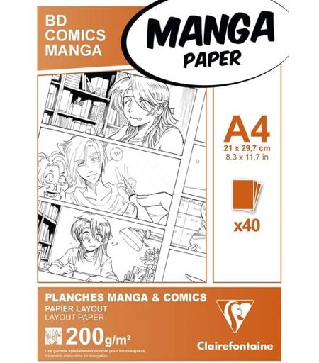 Papier für Manga, Packung/Etui mit 40 Blatt A4 200g Weißes Papier für traditionelles Manga. Es ist sehr glatt, dick, widerstandsfähig, lässt sich gut radieren und eignet sich gut für v erschiedene Arbeiten: Schaben/Kratzen, Ausschneiden, Raster anlegen. Für Techniken mit Alkoholmarker geeignet: die Tinte scheint nicht durch das Papier, es ist durchschlagfest. Neutrales Papier ohne Raster/Markierungen (auch als Papier mit Raster/Markierungen erhältlich). ...