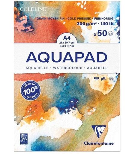 Aquarellblock Goldline Aquapad A4 geleimt, 50 Blatt weiß 300g, mittlere Körnung Das natürlich weiße Aquarellpapier Goldline aus reiner Zellulose in Studienqualität. Das Papier verfügt über eine feine, mittlere Körnung, die auf einer Seite des Papiers ausgeprägter ist. Für ein vielseitiges und einfaches Arbeiten. Ideal für Studierende dank des sehr guten Preis-Leistungs-Verhältnisses. Das Papier ist säurefrei, pH-neutral, mit einer ausgezeichneten Archivierungsqualität und einer sehr guten Absorptionskraft. ...