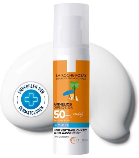 Wirkungsweise von La Roche Posay Anthelios Dermo-Kids Baby Milch LSF 50+ La Roche Posay Anthelios Dermo-Kids Baby Milch LSF 50+ ist für sehr empfindliche und zu Neurodermitis neigende Baby-Haut geeignet. Dazu hat La Roche-Posay einerseits sein bewährtes Thermalwasser eingesetzt, welches beruhigend auf die Haut wirkt. Andererseits enthält die Lotion Sheabutter, welche langanhaltende Feuchtigkeit spendet und eine rückfettende Wirkung hat. Mit den pflegenden Inhaltsstoffen lässt sich die Babycreme besonders gut auftragen und hinterlässt ein angenehmes, samtiges Hautgefühl, ohne zu fetten. Außerdem wurde sie von Dermatologen und Kinderärzten auf ihre Verträglichkeit geprüft. Sie eignet sich sowohl für Gesicht als auch Körper von Babys ab einem Alter von sechs Monaten.
