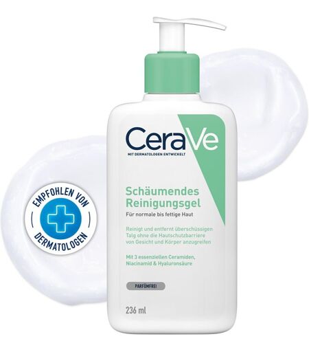 Anwendungsgebiet von CeraVe Schäumendes ReinigungsgelSchäumende Reinigung für normale bis fettige Haut von Gesicht und Körper.Wirkungsweise von CeraVe Schäumendes ReinigungsgelCeraVe Schäumendes Reinigungsgel reinigt die Haut gründlich. Es entfernt effektiv Schmutz, Make-up und Öl ohne den natürlichen Hautschutz anzugreifen. Dabei enthält sie eine Kombination aus drei essenziellen Ceramiden 1, 3 und 6-II, die die Hautschutzbarriere aufbaut und die Haut wieder zart und samtig macht.