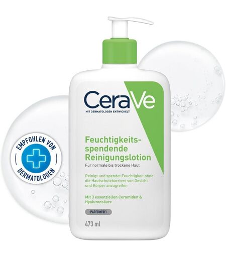 Anwendungsgebiet von CeraVe Feuchtigkeitsspendende ReinigungslotionDie CeraVe Feuchtigkeitsspendende Reinigungslotion mit Hyaluron und drei essenziellen Ceramiden reinigt sanft, versorgt die Haut mit Feuchtigkeit und stärkt die natürliche Schutzbarriere der Haut.
