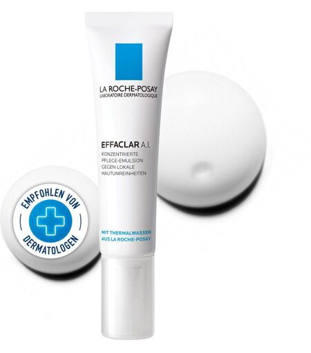 La Roche-Posay EFFACLAR A.I.Befreit die Haut gründlich von lokalen Hautunreinheiten. Für ein glatteres, ebenmäßigeres Hautbild.Eigenschaften Bei lokalen Hautunreinheiteiten und Pickeln.EFFACLAR A.I. konzentrierte Emulsion befreit die Haut gezielt von lokalen Hautunreinheiten und Pickeln: Bekämpft die Entstehung von Unreinheiten Wirkt porentief, um Unreinheiten und Pickel zu beseitigen Erneuert das Hautbild Beruhigt die Haut dank hautberuhigendem Thermalwasser aus La Roche-Posay Anwendung:Wiederholt lokal auf die Hautunreinheiten bzw. Pickel auftragen, bis diese beseitigt sind. Nicht komedogen.Inhaltsstoffe: AQUA / WATER, CYCLOHEXASILOXANE, ISONONYL ISONONANOATE, PROPYLENE GLYCOL, ISOHEXADECANE, NIACINAMIDE, PEG-100 STEARATE, GLYCERYL STEARATE, CETYL ALCOHOL, MAGNESIUM ALUMINUM SILICATE, CARBOMER, SODIUM HYDROXIDE, CAPRYLOYL GLYCINE, CAPRYLOYL SALICYLIC ACID, CITRIC ACID, XANTHAN GUM, ACRYLATES COPOLYMER, SALICYLIC ACID, IODOPROPYNYL BUTYLCARBAMATE, CHLORHEXIDINE DIGLUCONATE, PIROCTONE OLAMINE, PARFUM / FRAGRANCEHersteller: 86270 La Roche-Posay, France fragen@loreal-group.com ...