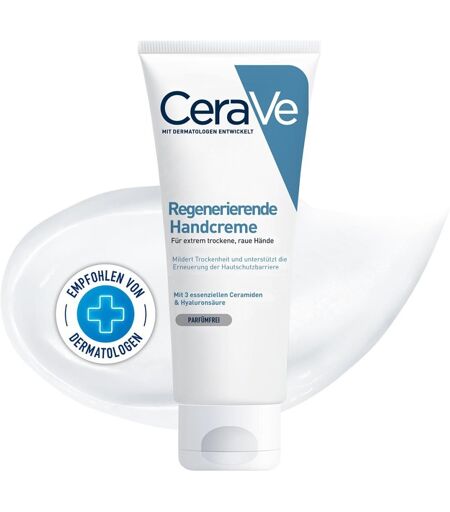 Anwendungsgebiet von CeraVe Regenerierende HandcremeDie CeraVe Regenerierende Handcreme spendet trockenen, rauen Händen langanhaltend Feuchtigkeit, fördert die Erneuerung der natürlichen Hautschutzbarriere und hinterlässt ein samtig-weiches Hautgefühl.