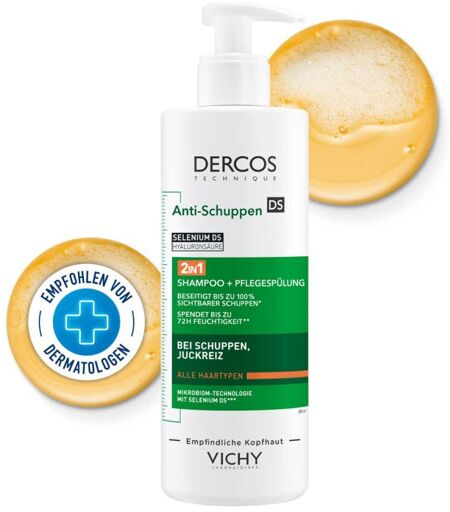 Anwendungsgebiet von Vichy Dercos 2in1 Anti-Schuppen Shampoo + Pflegespülung Das Vichy Dercos 2in1 Anti-Schuppen Shampoo + Pflegespülung vereint eine effektive Lösung gegen Schuppen mit der Wirkung einer Pflegespülung. Das Ergebnis: schuppenfreie Kopfhaut und weiches, glänzendes Haar.