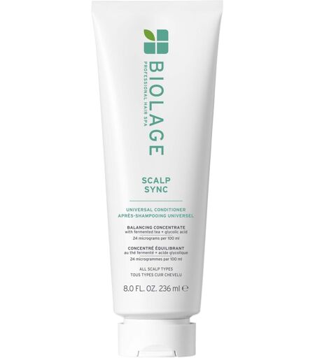 Powered by a creamy yet weightless texture, the Biolage Scalp Sync Universal Conditioner softens from root to tip, while helping the scalp feel refreshed and nourished. Formulated with a fermented tea blend and glycolic acid, the conditioner provides a boost of hydration for dry, oily, or sensitive scalps, supporting a cleaner surface without compromising on moisture. The finish is silky, the feel is light and the result is hair that looks glossy and conditioned. ...