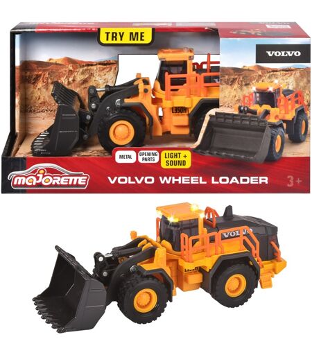 Der Majorette Volvo Radlader ist wichtig für den Transport von Gütern. Auf einer richtigen Baustelle werden viele Fahrzeuge benötigt, dazu gehört natürlich auch ein Radlader. Er ist dafür da, Güter zu laden und über kurze Strecken zu transportieren. Der Radlader von Majorette sieht dank der Detailverliebtheit nicht nur toll aus, er hat auch noch zahlreiche praktische Funktionen, die für ordentlich Spielspaß sorgen. Das Spielzeugauto ist mit zwei verschiedenen Sounds sowie zwei Front- und zwei Heckscheinwerfern ausgestattet, zusätzlich sorgt eine orangefarbene Signalleuchte auf dem Dach dafür, dass man das Fahrzeug nicht übersehen kann. Neugierige können außerdem die Motorenklappe öffnen und selbstverständlich kann die Schaufel nach Belieben kinderleicht auf- und ab bewegt werden. Der Volvo Radlader ist robust und ist deshalb für schwere Einsätze gerüstet. Die große Schaufel des Fahrzeugs und das obere Fahrgestell sind aus Metall, andere Teile aus Kunststoff. ...