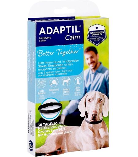 Anwendungsgebiet von Adaptil Calm Halsband für mittelgroße und große HundeAdaptil Calm Halsband für mittelgroße und große Hunde unterstützt Ihren Hund dabei, sich sowohl drinnen als auch draußen entspannt und wohl zu fühlen. Es sorgt für kontinuierliches Wohlbefinden und bietet gerade in stressigen Momenten außerhalb des Hauses Beruhigung, zum Beispiel bei lauten Geräuschen wie Feuerwerk oder Gewitter, in Angstsituationen, beim Aufenthalt in einer Hundepension, während des Trainings oder bei der Hundeschule sowie beim Alleinbleiben, insbesondere bei Hunden, die viel Zeit im Freien verbringen.