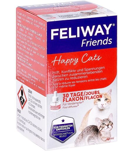 FELIWAY® FRIENDS ist eine synthetische Kopie von diesem Pheromon und hat den gleichen besänftigenden Effekt auf Katzen jeden Alters. Wissenschaftlich belegt, hilft FELIWAY® FRIENDS die Spannungen und Konflikte im Mehrkatzenhaushalt zu reduzieren.