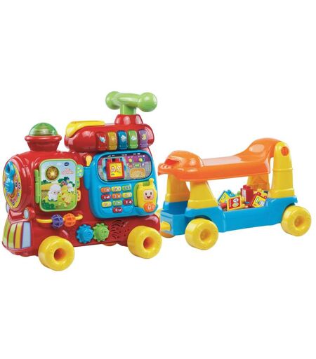 Die Baby Rutscher ABC Eisenbahn von vtech wird auch den höchsten Ansprüchen in Sachen Spielvergnügen gerecht. Dabei steht neben dem Spaß vor allem die Förderung der kindlichen Entwicklung im Fokus. Rutscher ABC Eisenbahn mit bedruckten Buchstabenklötzen, Zahlen, Melodien und Spielutensilien kann als Rutschfahrzeug, Zieh- oder Laufwagen und als Spielboard eingesetzt werden geeignet ab 12 Monaten bis 20kg belastbar deutschsprachig Die ABC Eisenbahn ist ein wahrer Alleskönner. Mit dem Spielboard erkunden die Kleinen Buchstaben und Zahlen. Verwendet als Zieh- oder Laufwagen wird obendrein auch die Motorik trainiert und für alle Fortgeschrittenen kann die Eisenbahn auch als Rutschfahrzeug fungieren. Begleitet wird die lustige Entdeckungstour dabei von bekannten Liedern und Kindermelodien. ...