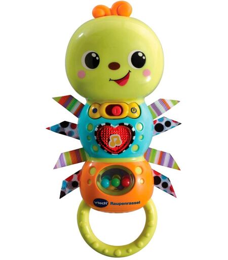 Mit der süßen Raupe von vtech können die Kleinen singen und spielen! Rassel Raupe von vtech mit Musiktaste, 3 gesungenen Liedern und 10 Melodien Lautstärkeregler, kindersicheres Batteriefach, Abschaltautomatik deutschsprachig inkl. Demobatterien (Knopfzellen 3x LR44) ab 3 Monaten geeignet Die niedliche Raupe sorgt für echten Spielspaß. Zusätzlich zu den Rasselelementen wird voller Staunen den Klängen gelauscht. Neben drei gesungenen Liedern können die Kleinen auch zehn Melodien lauschen. ...