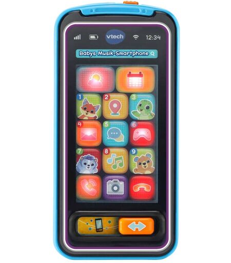 Mit Babys Musik-Smartphone von Vtech haben Kinder ab 12 Monaten ein abwechslungsreiches Lernspielzeug an ihrer Seite. Babys Musik-Smartphone von Vtech Tasten und Schiebe-Elemente, kindersicheres Batteriefach, Abschaltautomatik und Lautstärkeregler 2 Spielmodi: App- und Klavier-Modus Licht- und Sound-Effekte deutschsprachig aus Kunststoff ab 12 Monaten geeignet Babys Musik-Smartphone von Vtech bietet Kindern ab 12 Monaten abwechslungsreiche Beschäftigungsmöglichkeiten und jede Menge Spaß: Die Minis können zwischen zwei verschiedenen Spielmodi wählen: Im App-Modus hält das Smartphone 14 Tasten zum Erkunden bereit. Die Minis lernen Tiere, Zahlen oder erste Wörter kennen, hören Sätze, Lieder und Melodien. Im Klavier-Modus können die Kids mit gespeicherten Klaviertönen eigene Lieder komponieren. Folgen sie der Lichteranleitung des Handys, lassen sich auch Stücke nachspielen. Die Lautstärke kann individuell reguliert werden. Praktisch: Das Spielzeug-Handy verfügt für einen batterieschonenden Betrieb über eine Abschaltautomatik. ...