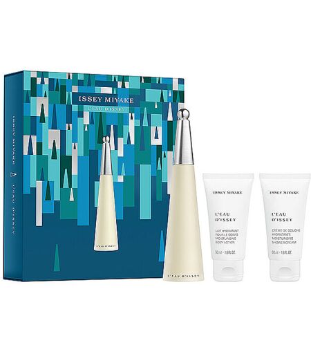 Geschenkset zu Weihnachten L'Eau d'Issey Eau de Toilette für Frauen von Issey Miyake Issey Miyake Parfums präsentiert eine einzigartige Geschenkidee und lädt Sie ein, die Weihnachtszeit in einem grafischen und farbenfrohen Pinienwald zu feiern, eine Kreation, die aus der Zusammenarbeit mit dem Designer Philippe Apeloig entstanden ist. Dieses Geschenkset für Frauen enthält: L'Eau d'Issey Eau de Toilette 50ml L'Eau d'Issey Bodylotion 50ml L'Eau d'Issey Showergel 50ml Duftfamilie: blumig, frisch, aquatisch Kopfnote: Rose, Lotus Herznote: Lilie, frische Blumen Basisnote: edles Holz Ein duftendes Ritual, in dem ein üppiges Bouquet weißer Blumen, eine Mischung aus Lilie und Lotus, auf die Frische von Wasser und strukturierten Edelhölzern trifft. Ein blumiger Duft, der den Duft von Wasser auf der Haut einer Frau widerspiegelt. Issey Miyake engagiert sich für eine verantwortungsvollere Reise durch ökologisch konzipierte Geschenkboxen, die aus 100% FSC™-Karton bestehen und so bemessen sind, so dass weniger unnötige Materialien und Abfälle produziert werden. INCI (Inhaltsstoffe): EDT: ALCOHOL, PARFUM (FRAGRANCE), AQUA (WATER), HEXAMETHYLINDANOPYRAN, TETRAMETHYL ACETYLOCTAHYDRONAPHTHALENES, HYDROXYCITRONELLAL, LINALOOL, CITRONELLOL, EUGENOL, GERANIOL, TERPINEOL, AMYL SALICYLATE, ROSE FLOWER OIL/EXTRACT, BENZYL BENZOATE, PELARGONIUM GRAVEOLENS FLOWER OIL, FARNESOL, LIMONENE, ROSE KETONES, VANILLIN, GERANYL ACETATE, CITRAL, BETA-CARYOPHYLLENE, METHYL SALICYLATE BODYLOTION: AQUA (WATER), BUTYLENE GLYCOL, CETEARYL ISONONANOATE, DIMETHICONE, GLYCERIN, PARFUM (FRAGRANCE), XYLITOL, GLYCERYL STEARATE, PEG-100 STEARATE, PENTAERYTHRITYL TETRAETHYLHEXANOATE, BUTYROSPERMUM PARKII (SHEA) BUTTER, PHENYL TRIMETHICONE, CETEARYL ALCOHOL, HYDROXYETHYL ACRYLATE/SODIUM ACRYLOYLDIMETHYL TAURATE COPOLYMER, PHENOXYETHANOL, ISOHEXADECANE, BENZYL SALICYLATE, CAPRYLYL GLYCOL, TOCOPHERYL ACETATE, ETHYLHEXYL METHOXYCINNAMATE, TRIMETHYLCYCLOPENTENYL METHYLISOPENTENOL, LINALOOL, BUTYL METHOXYDIBENZOYLMETHANE, DISODIUM EDTA, POLYSORBATE 60, HYDROXYCITRONELLAL, ACRYLATES/C10-30 ALKYL ACRYLATE CROSSPOLYMER, SORBITAN ISOSTEARATE, HEXAMETHYLINDANOPYRAN, CITRONELLOL, SODIUM HYDROXIDE, GERANIOL, EUGENOL, GERANYL ACETATE, DIMETHYL PHENETHYL ACETATE, ROSE KETONES, VANILLIN, BHT BODYGEL: AQUA (WATER), SODIUM LAURETH SULFATE, COCAMIDOPROPYL BETAINE, PARFUM (FRAGRANCE), DIPROPYLENE GLYCOL, GLYCERIN, PEG-7 GLYCERYL COCOATE, ACRYLATES COPOLYMER, BUTYLENE GLYCOL, PEG-200 HYDROGENATED GLYCERYL PALMATE, XYLITOL, SODIUM BENZOATE, DICAPRYLYL ETHER, LAURYL ALCOHOL, BENZYL SALICYLATE, STYRENE/ACRYLATES COPOLYMER, PEG-55 PROPYLENE GLYCOL OLEATE, PROPYLENE GLYCOL, GUAR HYDROXYPROPYLTRIMONIUM CHLORIDE, TOCOPHERYL ACETATE, LINALOOL, DISODIUM EDTA, HYDROXYCITRONELLAL, SODIUM CHLORIDE, COCO-GLUCOSIDE, CITRONELLOL, SODIUM HYDROXIDE, GERANIOL, EUGENOL, BENZOIC ACID, CITRIC ACID, TOCOPHEROL WARNHINWEIS: Entflammbar / Direkten Kontakt mit den Augen vermeiden. Bei Kontakt die Augen gründlich mit Wasser ausspülen.... ...