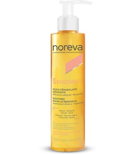 Anwendungsgebiet von Noreva Sensidiane Beruhigendes ReinigungsölENTFERNT SANFT DAS MAKE-UP - SPENDET FEUCHTIGKEIT - BERUHIGTDie sanfte und beruhigende Lösung für alle empfindliche, reaktive und intolerante Haut.Das Noreva Sensidiane Beruhigendes Reinigungsöl reinigt sanft alle Unreinheiten, entfernt wirksam alle Spuren von Make-up, auch wasserfestes, und hilft, das natürliche Gleichgewicht der Haut dank seines Komplexes aus 4 Pflanzenölen (Nachtkerze, Tsubaki, Baumwolle und Borretsch) und NeutrazenTM wiederherzustellen. Es hinterlässt die Haut gereinigt und beruhigt, ohne sie zu fetten.Die Haut ist sauber und weich, wird mit Feuchtigkeit versorgt, das Spannungsgefühl wird gemindert und die Haut wirkt strahlend und angenehm.Die parfümfreie, nicht fettende und nicht klebende Formel schützt die Haut vor dem Austrocknen:95% reinigt die Haut sanft*90% entfernt wasserfestes Make-up*90% hinterlässt ein angenehmes Hautgefühl und befreit die Haut von Spannungsgefühlen*90% reinigt die Haut*WIRKSTOFFE• effektive, chemische UV-Schutzfilter: Breitbandfilter• Sensitive Protect: schützt die Zellen• Wüstendattel- + Nachtkerzenöl: nährt & schützt vor freien RadikalenINDIKATIONENDie Reinigungs- und Make-up-Entfernungslösung für empfindliche bis intolerante Haut, die Make-up, selbst wasserfestes Make-up, beruhigt und entfernt.Wirkungsweise von Noreva Sensidiane Beruhigendes ReinigungsölNoreva Sensidiane Beruhigendes Reinigungsöl wurde speziell für die sanfte Entfernung von Unreinheiten und die effektive Reinigung von Augen, Lippen und Gesicht entwickelt und respektiert dabei das Gleichgewicht und die Integrität von empfindlicher und reaktiver Haut.Die vier pflanzlichen Öle (Nachtkerze, Tsubaki, Baumwolle, Borretsch) entfernen sanft Make-up und reinigen, selbst wasserfestes Make-up.NeutrazenTM beruhigt die gereizte Haut und reguliert die Hautempfindlichkeit.Glycerin und die Pflanzenöle Nachtkerze und Tsubaki wirken synergetisch, um d ...
