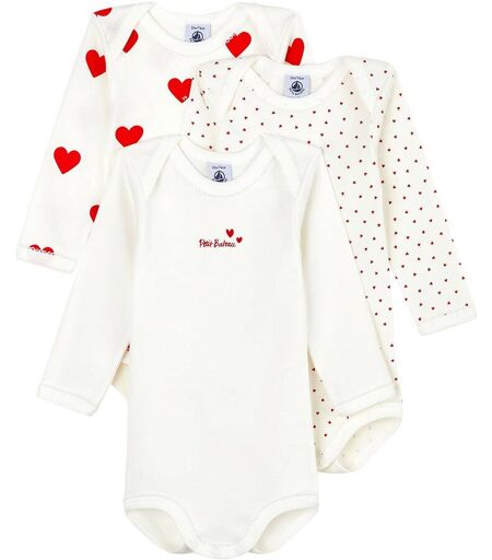 Petit Bateau 3er-Pack Bodys langarm Herzen - mehrfarbig - Maedchen - Size: 92