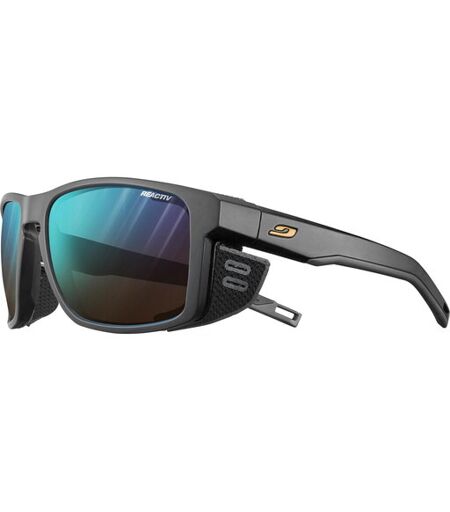 Julbo hat bei der Shield mit Reactiv 2-4 Gläsern seine technische Erfahrung auf dem Gebiet der Hochgebirgsbrillen mit modernem, ästhetischem Design kombiniert, um eine leistungsstarke Brille mit hohem Schutzniveau zu entwickeln. Ihre abnehmbaren, textilen Seitenteile gewährleisten dabei sicheren Schutz und angenehmen Sehkomfort. Dank ihrem besonders leistungsstarken Belüftungssystem Air Flow ist die SHIELD die Brille der Wahl bei anstrengenden Anstiegen. Mit ihren gewölbten Grip Tech Bügeln und rutschfestem Nasensteg sitzt diese Brille immer zuverlässig da, wo sie hingehört. Zudem sorgt ihr stilvolles Design für einen zusätzlichen Coolness-Faktor im Gebirge. Reactiv 2-4 Gläser: Schutzkategorie 2-4 Selbsttönend: je nach Lichtstärke dunkelt das Glas von selbst ein oder hellt wieder auf Hohe Reaktivität: 22 bis 28 Sekunden Außergewöhnlicher Antibeschlagschutz: kein Beschlagen der Gläser und hohe Lebensdauer Externe ölabweisende Behandlung: macht das Glas schmutzabweisend und sorgt für ein besseres Abperlen des Wassers Braune Tönung: verstärkt die Reliefwirkung. Lichtdurchlässigkeitsfaktor des sichtbaren Lichts: 7 - 35%, alle Julbo Gläser gehören der optischen Klasse 1 an und gewährleisten 100%-tigen Schutz vor UVA-, UVB- und UVC-Strahlung. ...