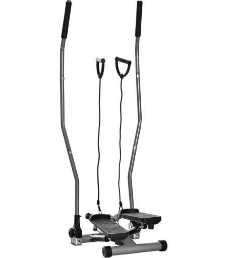 HOMCOM Stepper mit Griffen und Extensoren Fitnessgerät mit LCD-Display aus Stahl ABS 54 x 40 x 135 cm Schwarz und Silber