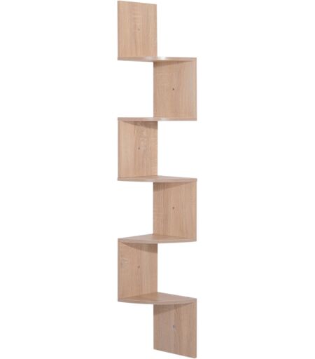 HOMCOM Eckenregal Wandregal Zigzag-Design 20L x 20B x 126H cm 5 Ebenen Holz hellbraun